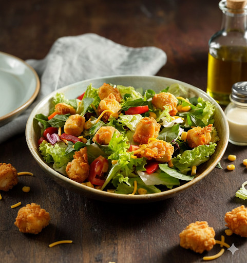 ÇITIR TAVUKLU SALATA İçindekiler:Çıtır Tavuk Parçaları, Marul, Domates, Mısır, Yeşil Zeytin, Ekmek Kroket, Zeytinyağlı Özel Sos Fiyat:175 TL